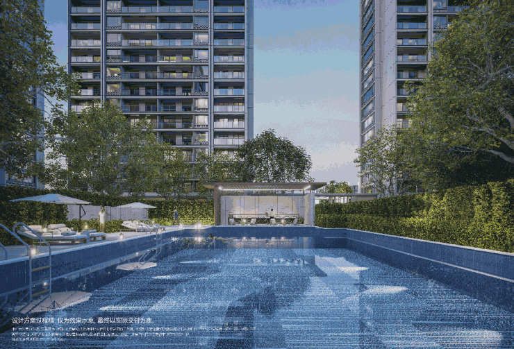 内部景观规划上,可以露营、放风筝、打太极的 超1000㎡阳光大草坪、约310㎡的度假泳池 (规划报批文件中为戏水池,实际交付为泳池)、孩子们喜爱的 儿童乐园 、晨跑和夜跑皆宜的 有氧跑道宠物也能放肆奔跑的友好空间 ......装下你对生活的所有期待。
