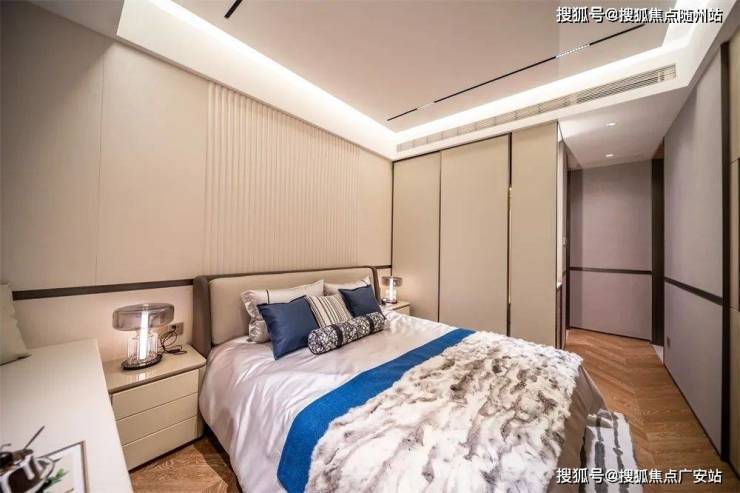 套房式主卧,带飘窗、衣帽间和卫生间 ,全面覆盖男女主人的生活所需。周末坐在飘窗上看书喝茶,累了就靠枕小憩,还可设计为收纳的地方,为空间扩容。