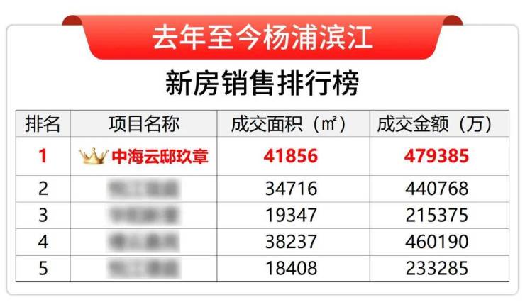 据网上房地产数据统计,去年至今各个维度中海云邸玖章都占据杨浦滨江的销冠宝座!