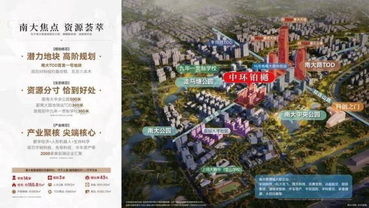 生态宜居,直面城市绿肺:直线500米即达约300亩南大中央公园(2025年底竣工),打造“步行生活圈”