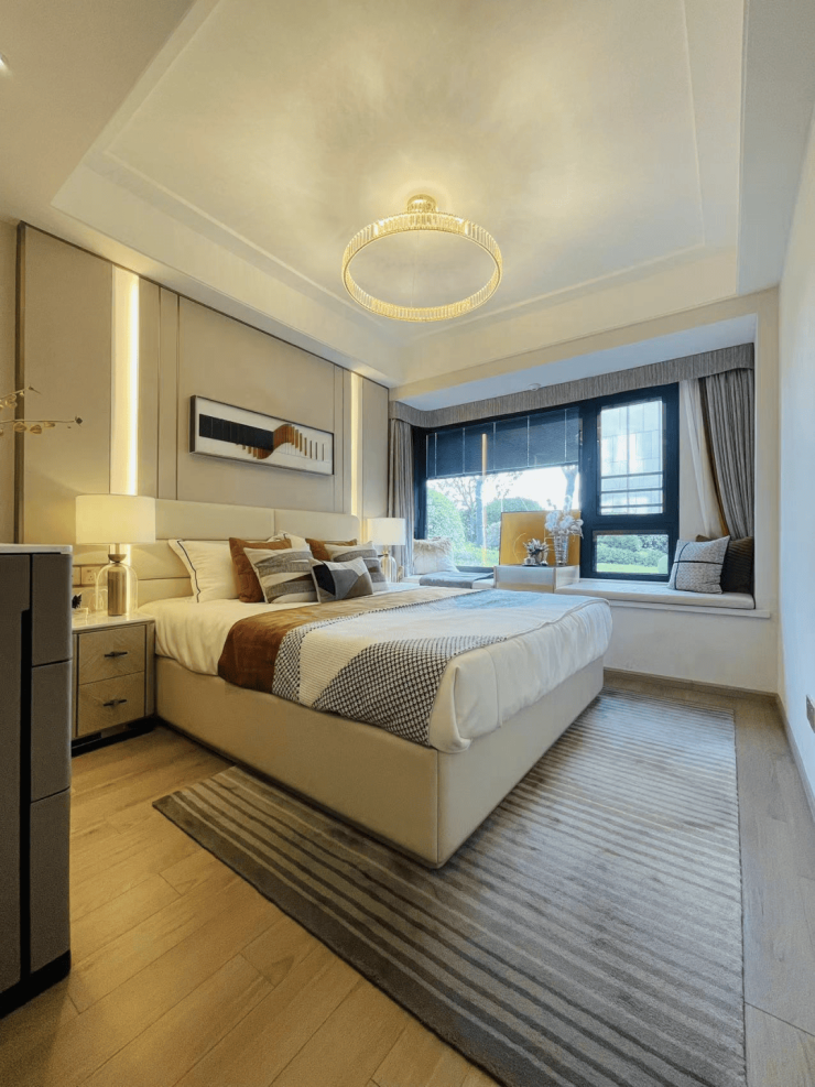 项目将“海绵城市”理念引入建设,打造更具健康环保生态的“海绵社区”,简约现代建筑风格,高达41%-45%的窗墙比打造,南向带飘窗位置的是三玻两腔low-e玻璃,东、南、西面且自带内置百叶,让屋内的隔音、隔热、防水、降噪效果达到最优。