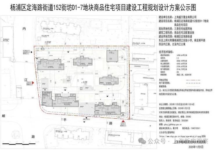 据官网显示,杨浦区定海路街道152街坊D1-7地块商品住宅项目建设工程规划设计方案公示。