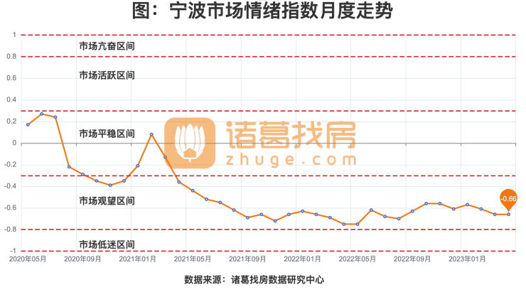 根据诸葛找房数据研究中心监测数据显示,2023年04月,宁波市场情绪指数为-0.66,较上月持平,位于市场观望区间。
