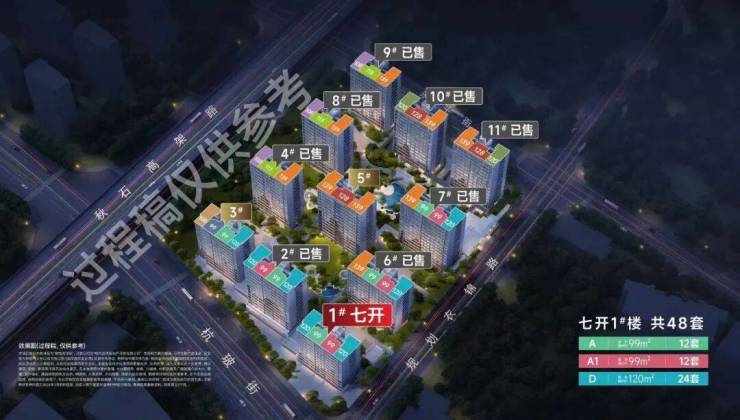 3月24日晚间,项目公示七开预售证,1#,48套房加推,面积约99-120方,均价3.0085万/平。