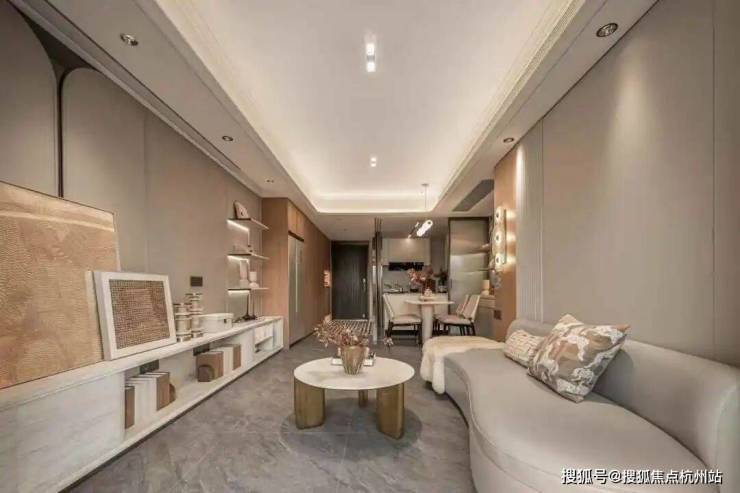 入户门厅以弧形悬浮顶棚为特色,为业主带来柔和温润的归家关怀,让归家的每一步都充满舒适与惬意。