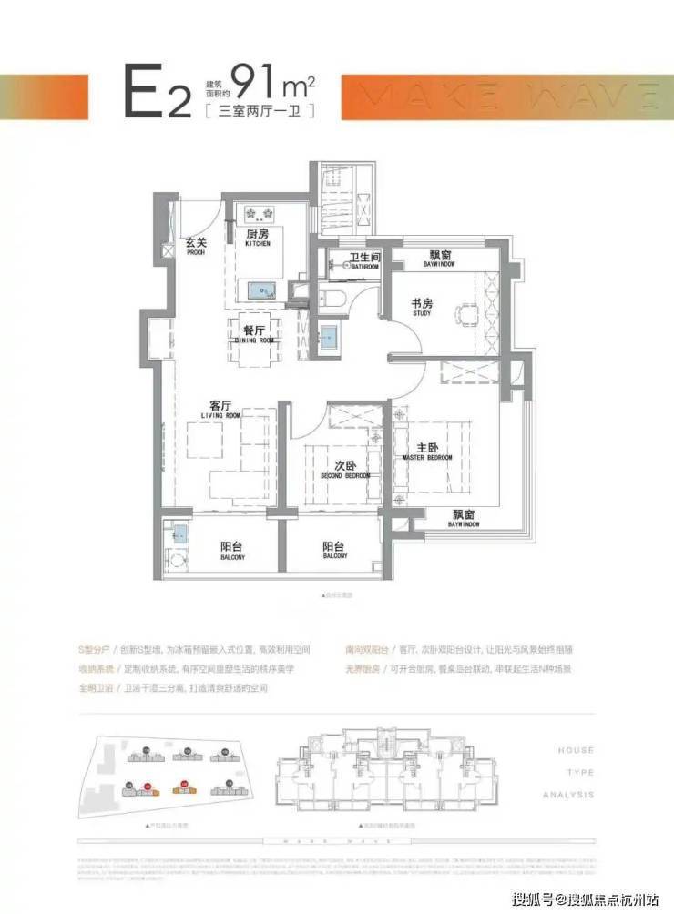 约91㎡三房两厅一卫:单价约4.6–4.9万元/㎡,总价约419–445万元,得房率约75%