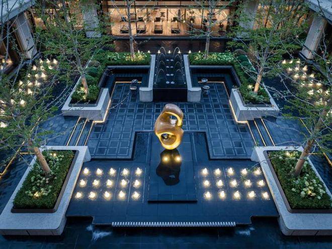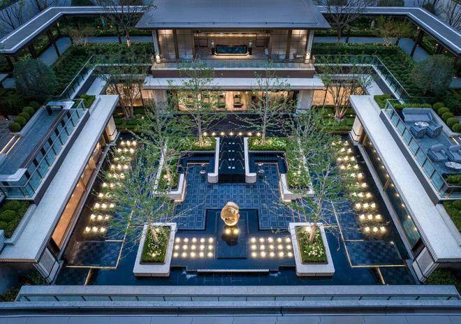 景观设计上,将东方园林造景的意境与意大利海派风格相融,中轴对称,以两轴两园三进礼序,打造高奢酒店式艺术生活园境。