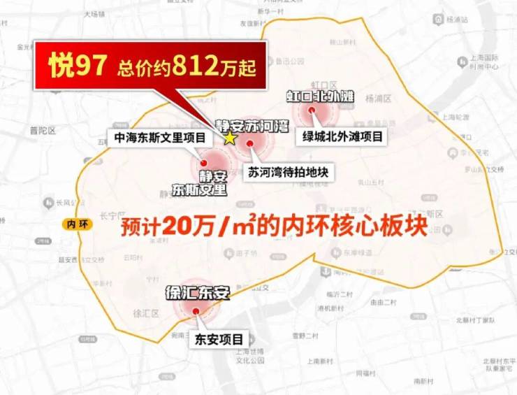 截止目前,徐汇东安项目、绿城北外滩项目、中海东斯文里项目都有望卖到20万/㎡的单价!