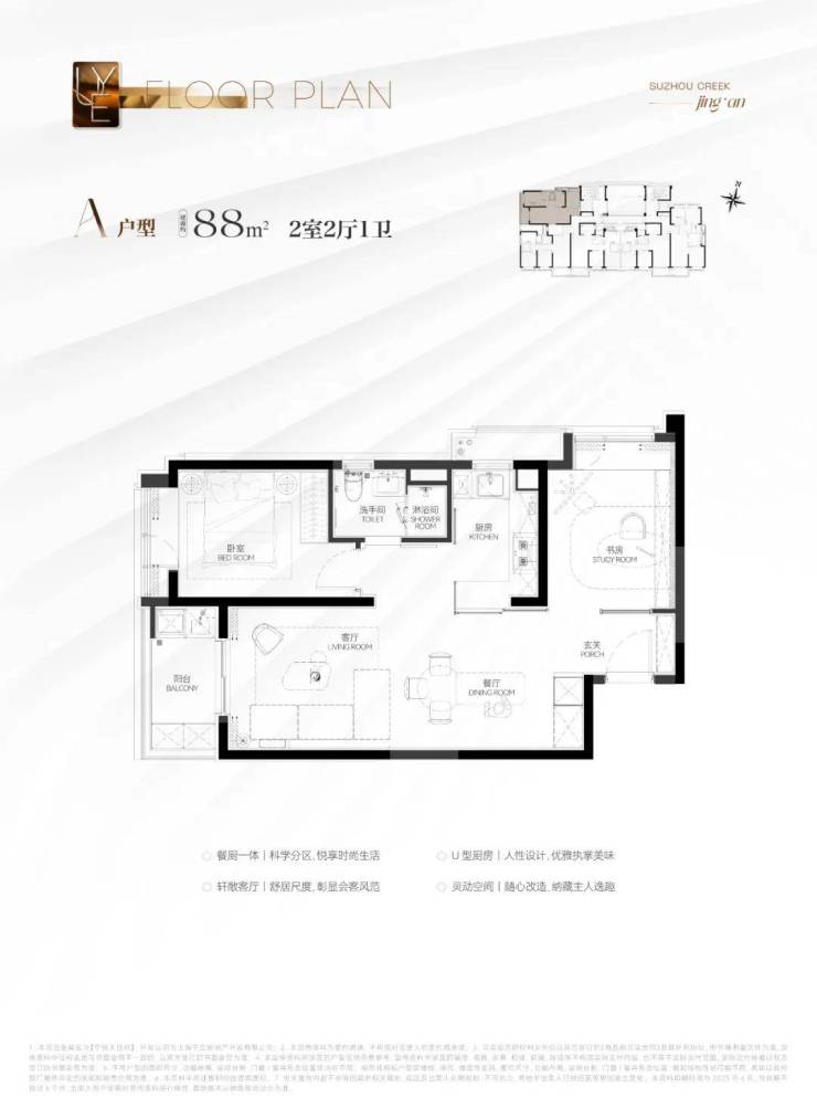 建筑面积约88㎡2房A户型:千万级预算买进苏河湾核心位置的绝版机遇,地段控闭眼冲!