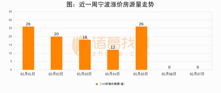 根据诸葛找房数据显示,宁波24小时涨价房源量为0套,较05月06日持平。