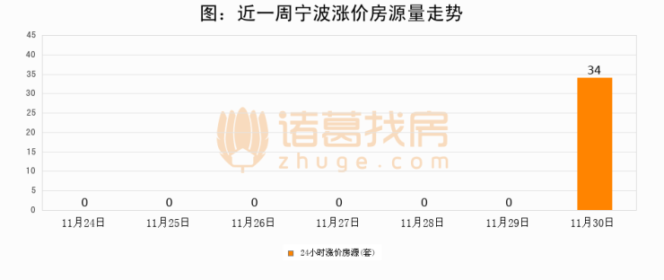 根据诸葛找房数据显示,宁波24小时涨价房源量为34套,较11月29日增加34套,环比上涨0%。与此同时,涨价房源占比小幅扩大,业主信心有所提升。