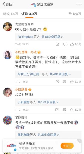 《梦想改造家》官方微博评论区
