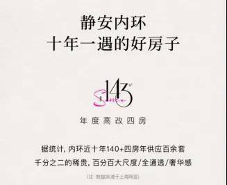 而建面约143㎡四房作为功能与总价平衡的“黄金户型”,近十年内环年供应仅百余套(占总量约千分之二)。而誉静安首推96套相当于内环一年供应量,对于改善家庭,此为入驻静安内环的罕见窗口。