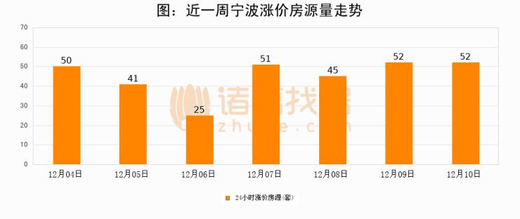 根据诸葛找房数据显示,宁波24小时涨价房源量为52套,较12月09日持平。