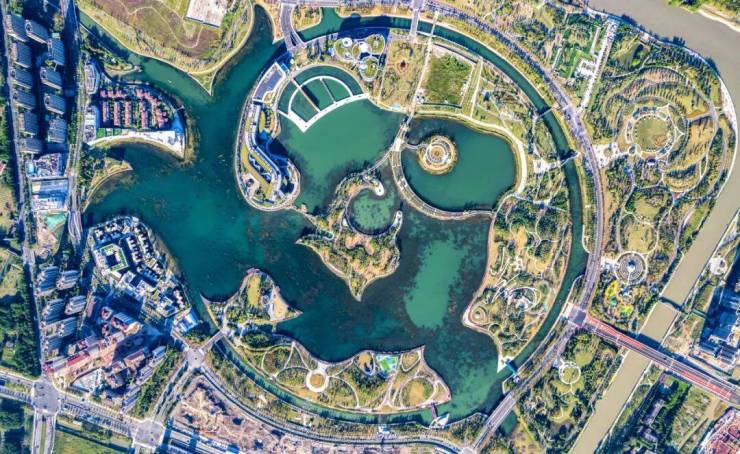 “上海之鱼”又名“金海湖”,是奉贤区的核心景观湖,占地约8.74平方公里,是上海湖面面积第三大的人工湖。