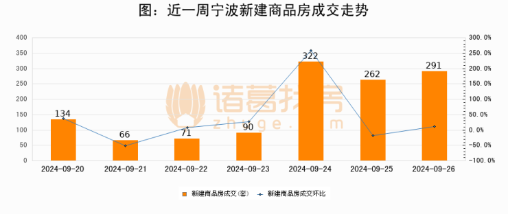 【宁波成交日报】09月26日新房成交291套;涨价房源56套