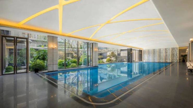 身处其间,宛如置身星级酒店!环绕水院皆为环幕通顶落地玻璃,人景相融,晴空朗照,美好生活画面徐徐展开!