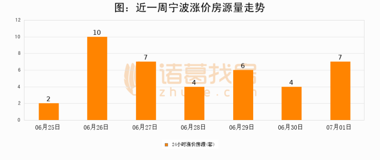 根据诸葛找房数据显示,宁波24小时涨价房源量为7套,较06月30日增加3套,环比上涨75%。与此同时,涨价房源占比小幅扩大,业主信心有所提升。