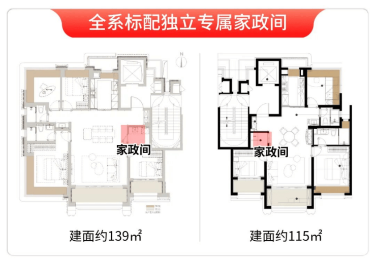 新人本主义:项目全系标配全屋飘窗+类一梯一户电梯厅。115㎡户型赠送面积约11㎡,实得率约93%;139㎡户型赠送约13.4㎡,实得率高达95%。139㎡户型更采用约5.2米奢阔横厅、LDKB一体化设计,边套主卧与书房双270°环幕视野,将中央风貌区尽收眼底。