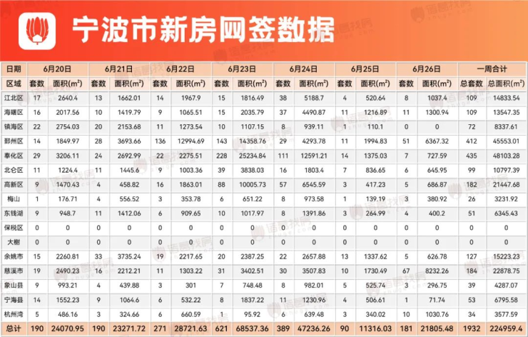 【第26周】新房网签量一路高歌,鄞州奉化破400套