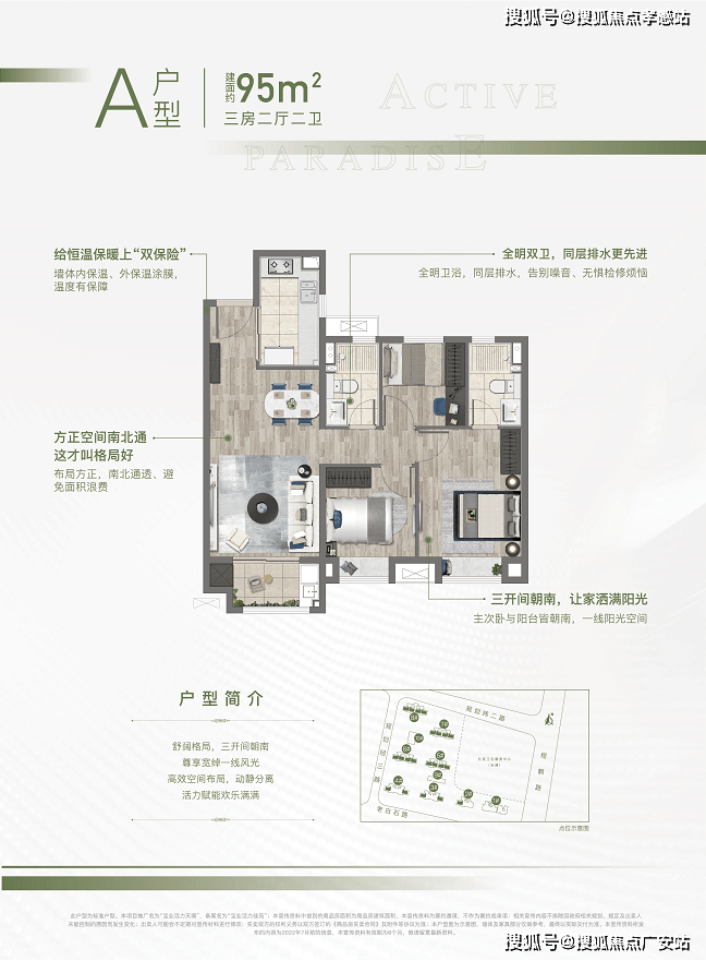1、约95㎡的三房,南北通透,全明设计,三开间朝南,户型方正。⤴️ 宝业·活力天境 售楼处热线☎️☎️:400-8618-004🔝🔜