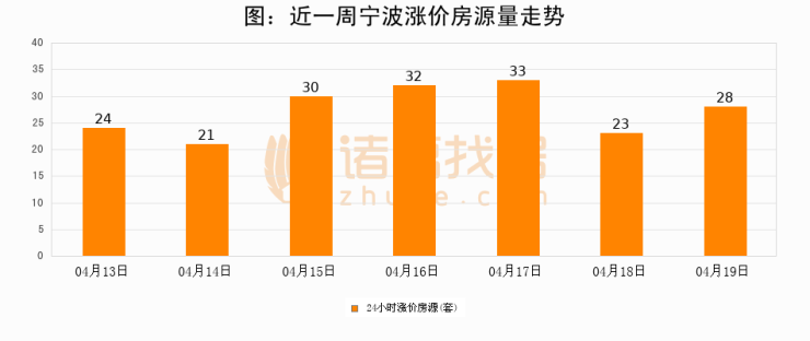 根据诸葛找房数据显示,宁波24小时涨价房源量为28套,较04月18日增加5套,环比上涨21.7%。与此同时,涨价房源占比小幅扩大,业主信心有所提升。