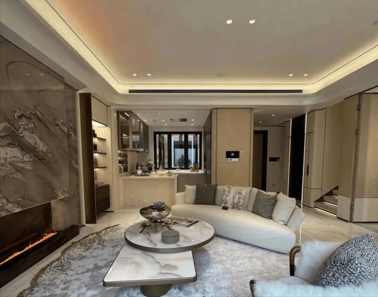 地上2-3层+挑高地下室,实用面积超150%(约455-600㎡);每户附赠15-60㎡私家庭院、观景露台,地下挑高空间可改造家庭影院/酒窖/藏品室,外立面采用手工凿毛石材、红砖及铜质线条,复刻海派石库门经典肌理。