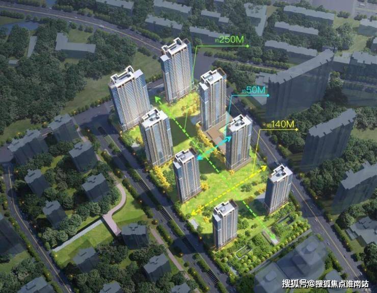 整体规划中,纵向中央绿轴超200米,横向景观轴约140米,南北楼间距约50-57米,东西间距也多超过44米。这不仅意味着更好的采光、通风与静谧性,更意味着每一扇窗外,迎接的不是邻家的墙壁,而是开阔的园景或远方的天空。
