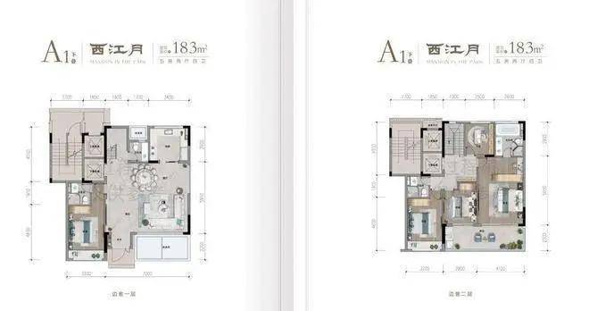 园林设计灵感来源于临平山上塘河,引山水入园,演绎宋式精工居所,整体遵循宋代江南水乡的古城肌理,展现大宅的隐奢调性,营造出“居山水、观天地”的空间意境。三进二庭五园的山水轴布局,两轴九景四时的极致意境生活。