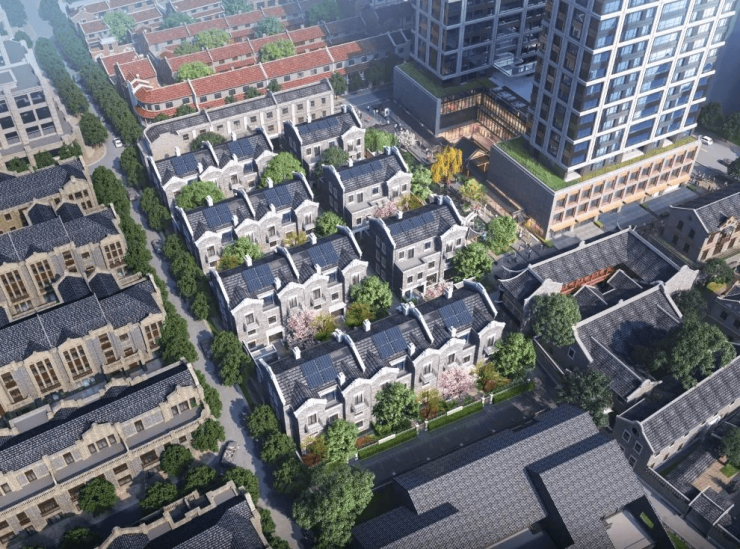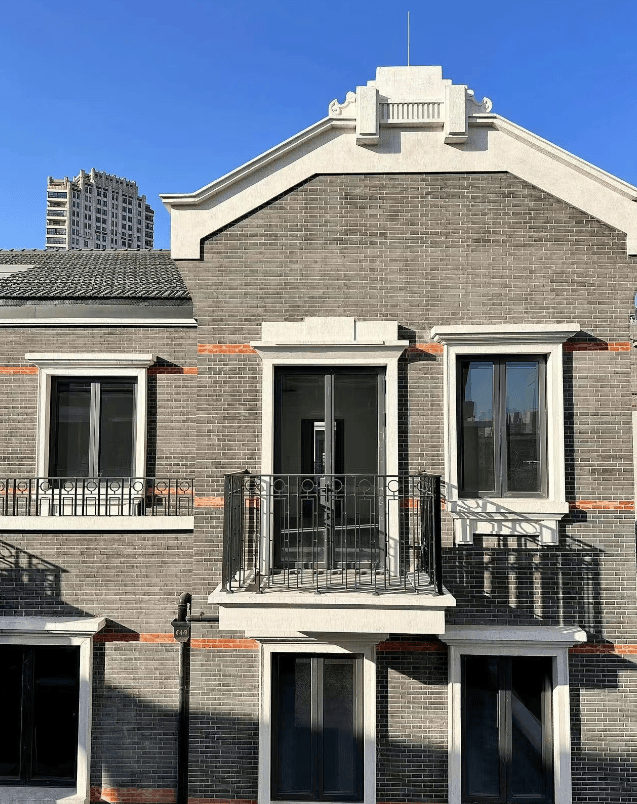 建筑风格:新海派石库门,保留青砖、红砖、元宝缝等历史肌理