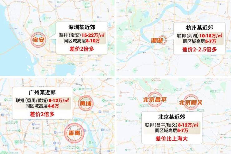 比如,上海近郊联排单价普遍在7-9万/㎡,总价900-1500万;而周边高层/洋房约4.5-5.5万/㎡,联排与高层比值仅为1.6-1.7倍。