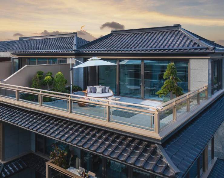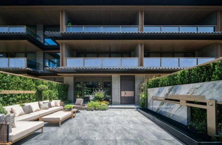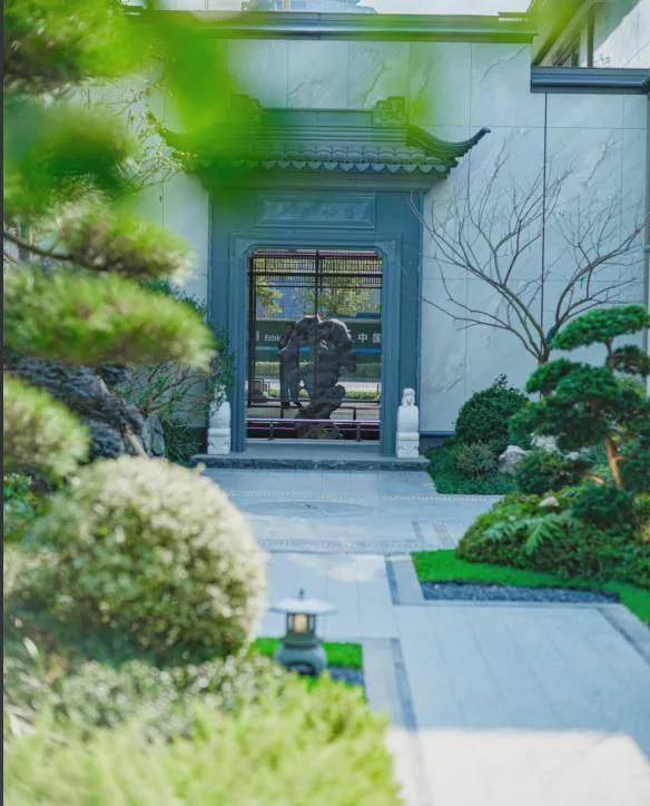 以卓越的窗墙比和大面积灰蓝玻璃,极简化打造光影天幕,倒映自然之境;在东方屋檐和宋韵飞檐之上,诠释当代建筑的东方大美;近40吨汉白玉、近100吨原生太湖石、巴金西口“璀璨年华”奢石、300岁高龄的进口珊瑚枫、20年红梅,数十年贵妃罗汉松、羽毛枫和黑松,近百年的原生紫薇……随处可见。