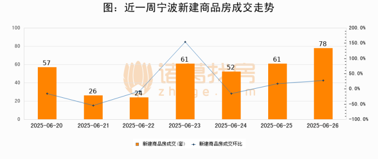 【宁波成交日报】06月26日新房成交78套;涨价房源10套