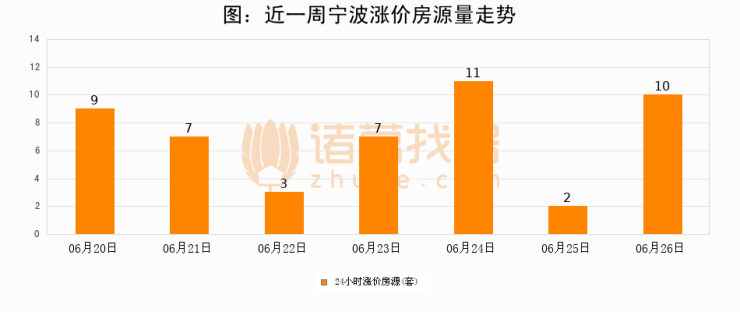 根据诸葛找房数据显示,宁波24小时涨价房源量为10套,较06月25日增加8套,环比上涨400%。与此同时,涨价房源占比小幅扩大,业主信心有所提升。