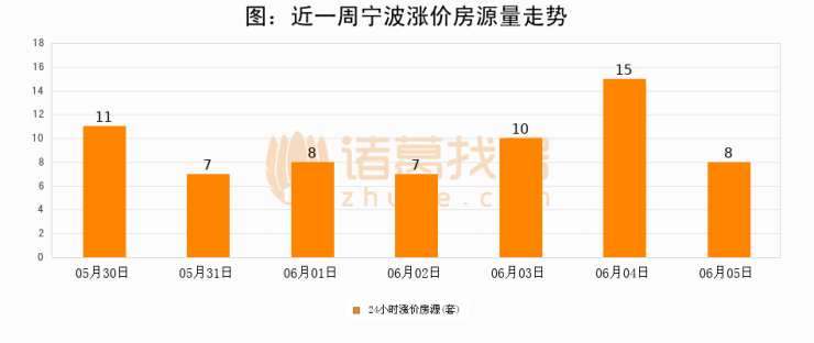 根据诸葛找房数据显示,宁波24小时涨价房源量为8套,较06月04日减少7套,环比下降46.7%。与此同时,涨价房源占比小幅回落,对于购房者来说是一个入市窗口期,购房者可抓住时机入市。