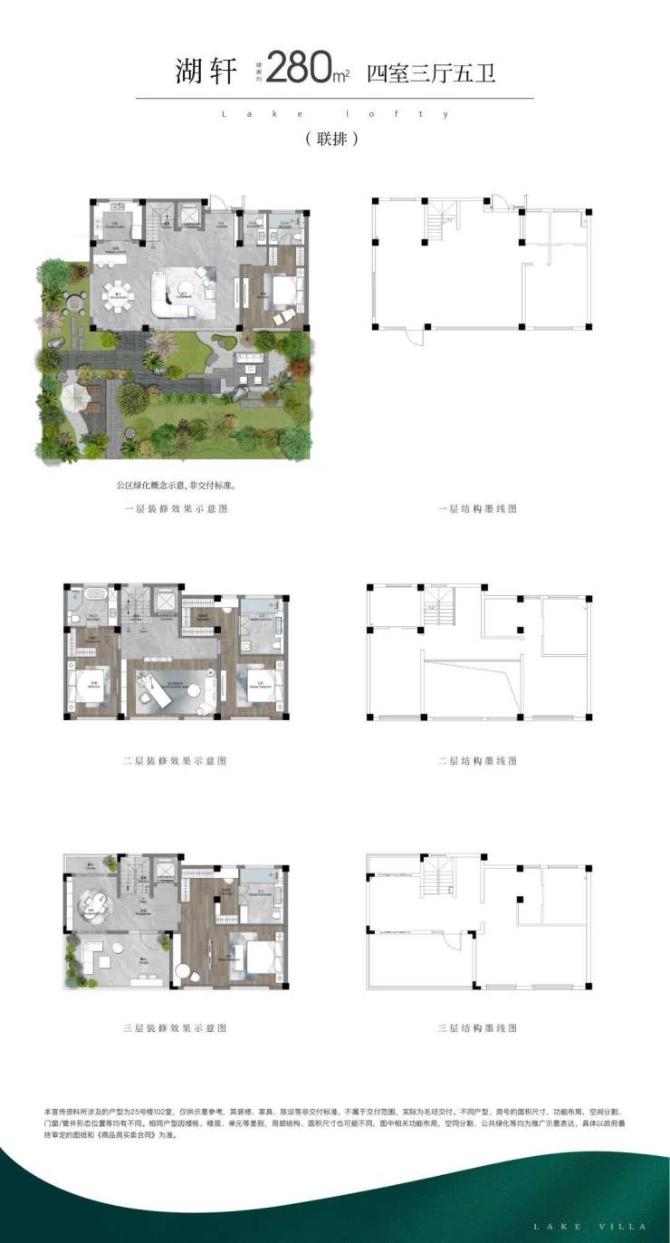 联排:打造约246m²、约256m²(边户)、约280m²三个户型面积,以迭代的联排作品,致敬真别墅的回归