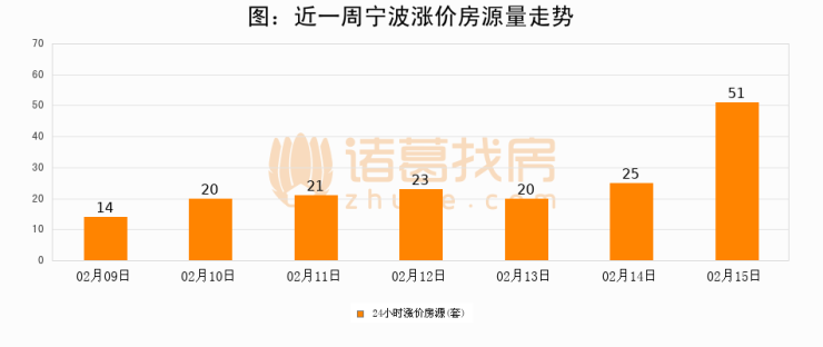 根据诸葛找房数据显示,宁波24小时涨价房源量为51套,较02月14日增加26套,环比上涨104%。与此同时,涨价房源占比小幅扩大,业主信心有所提升。
