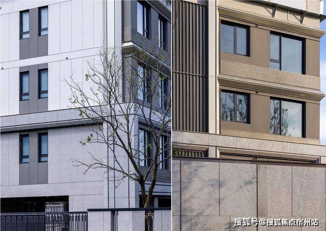 叠墅立面设计上, 使用270°的幕墙与铝板 呈现时代公建化高颜气质,超高成本的中式铝板披檐及基座与横向石材干挂传递东方审美。