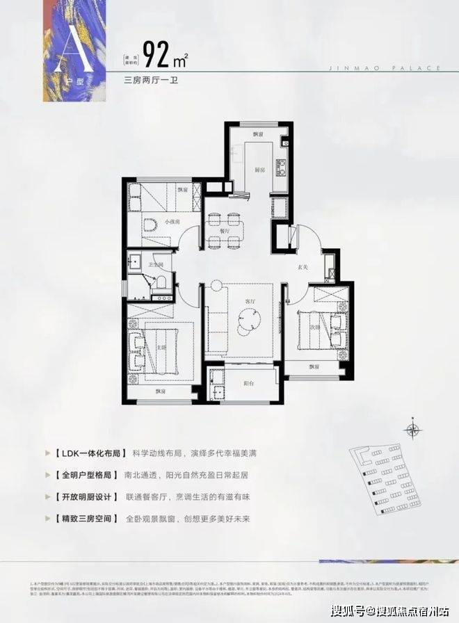 建面约92㎡3房2厅2卫