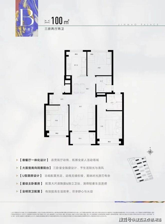 建面约100㎡3房2厅2卫