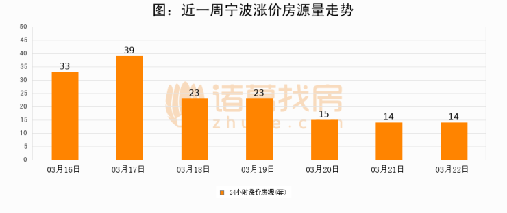 根据诸葛找房数据显示,宁波24小时涨价房源量为14套,较03月21日持平。