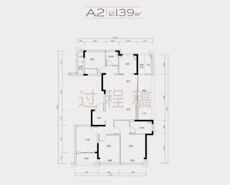 2)139方A1南厅户型,4房2厅2卫,得房率86%