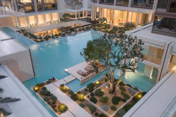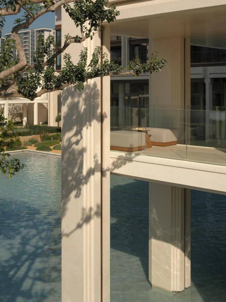 步入二进橄影廊庭,光影在回廊与水面间流转,构成静谧而富有呼吸感的水庭。天光倾泻,水色生辉,如同希腊安缦花园般悠然浪漫,演绎栖居的诗意序章。