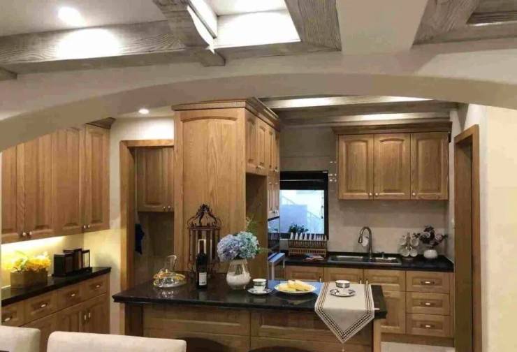 外立面采用文化石和手工打磨的stucco艺术涂料,烟囱、山花、铁艺栏杆、木质葡萄架,配合高低错落的彩瓦屋顶,空间层次优美。