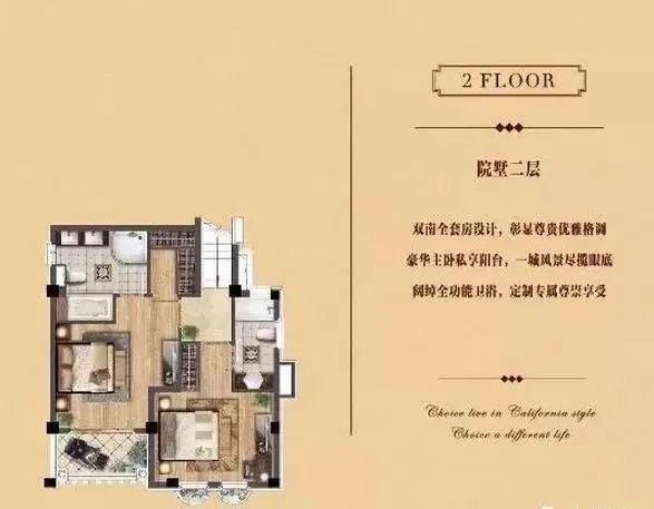 南加州风格:外立面采用暖黄色涂料、红色筒瓦、文化石,搭配玫瑰花园与水景广场,营造度假氛围。