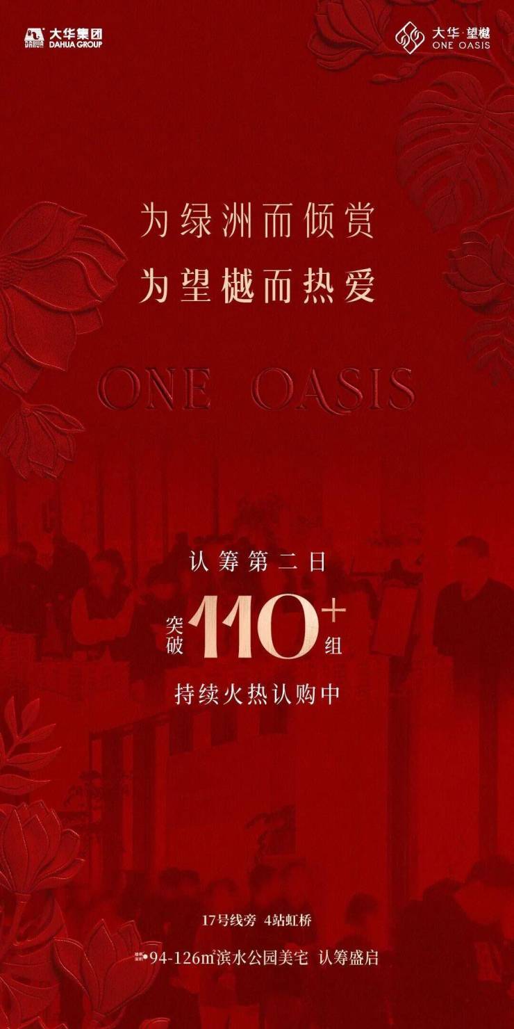 最新消息,1月20日,大虹桥核芯低密住区「大华·望樾」,首批次房源火爆认筹截止,成为2026开年首个认购破100%的楼盘!