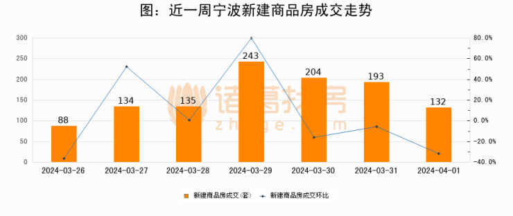 【宁波成交日报】04月01日新房成交132套;涨价房源24套