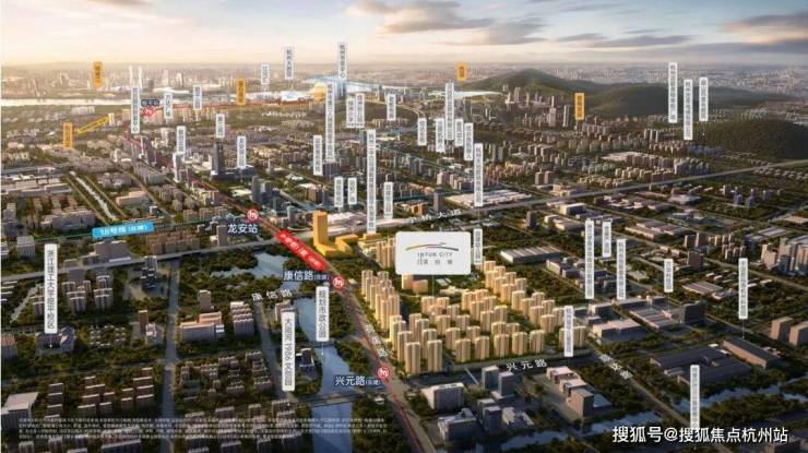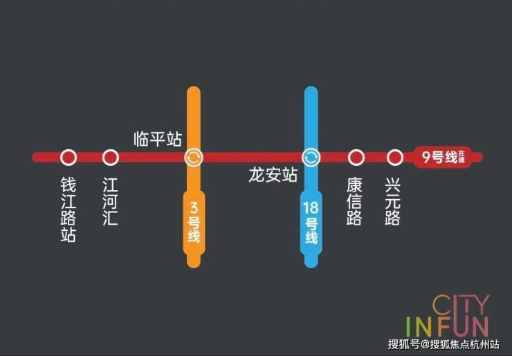 项目横跨 地铁9号线兴元路站 (在建)、 康信路站 (在建)两大站点,以轨道打破壁垒,一条地铁直达钱江新城、城东新城、滨江、西湖等高能区域,更高效的日常通勤外,还能享受到一脉市心的生活配套。
