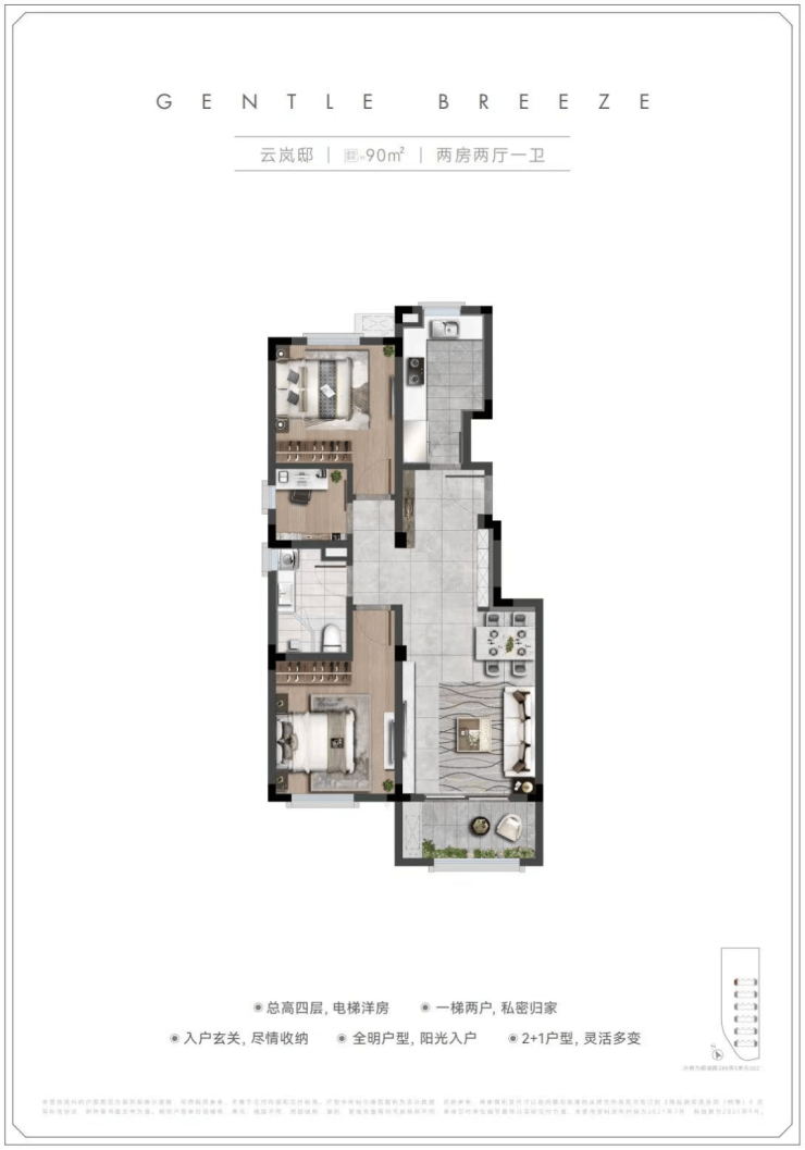 90㎡ 2-3 室 2 厅 1 卫:均价约2.79 万 /㎡,总价约 251 万起