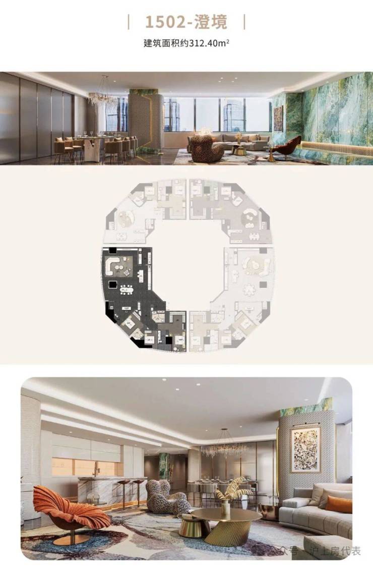 在售户型面积:建面约 221-312㎡三房至四房,有珀境、澄境、雅境、瑷境等多种艺术户型可供选择,主力推荐 280㎡“瑷境” 户型